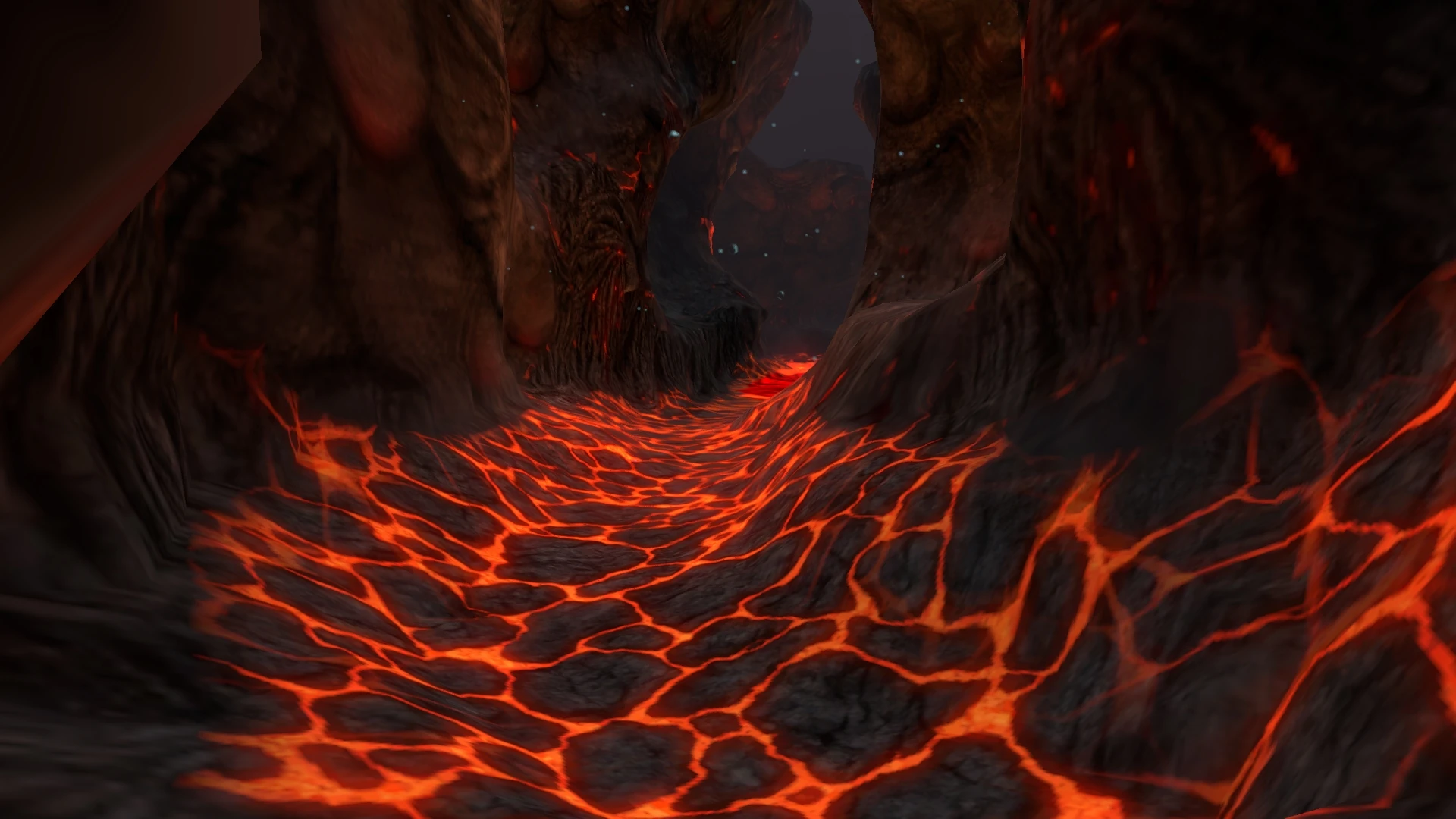 Das tiefstgelegenste und heißeste Gebiet im Spiel. Hier ergießt sich Lava aus dem Erdmantel des Planeten. Um diesen Ort erkunden zu können, muß man sehr gut vorbereitet sein. |