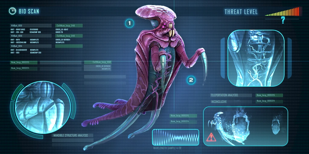 - Torso: Scheint andere Lebensformen zu jagen, es wurden aber keine Verdauungsorgane identifiziert. Die interne Struktur ist deutlich komplexer als bei anderen bekannten Organismen. Nicht zu unterscheiden, ob ursprünglich organisch oder künstlich.