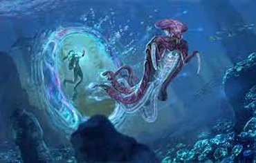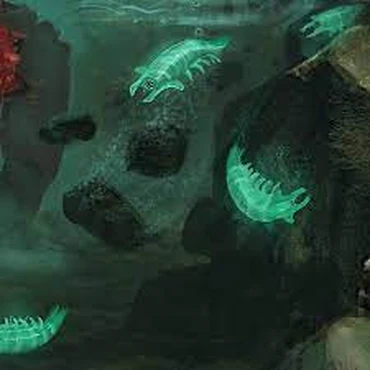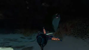 He kept following them until he noticed a green glow from afar, and even more Peepers swimming towards it. Once close enough he took a good look a the structure: there were two holes, one that sucked in water and Peepers, and another one that expelled the Peepers after a few seconds, however, the fish that exited the structure were different: when they swam around, they left a green-ish substance behind them which attracted other creatures.
