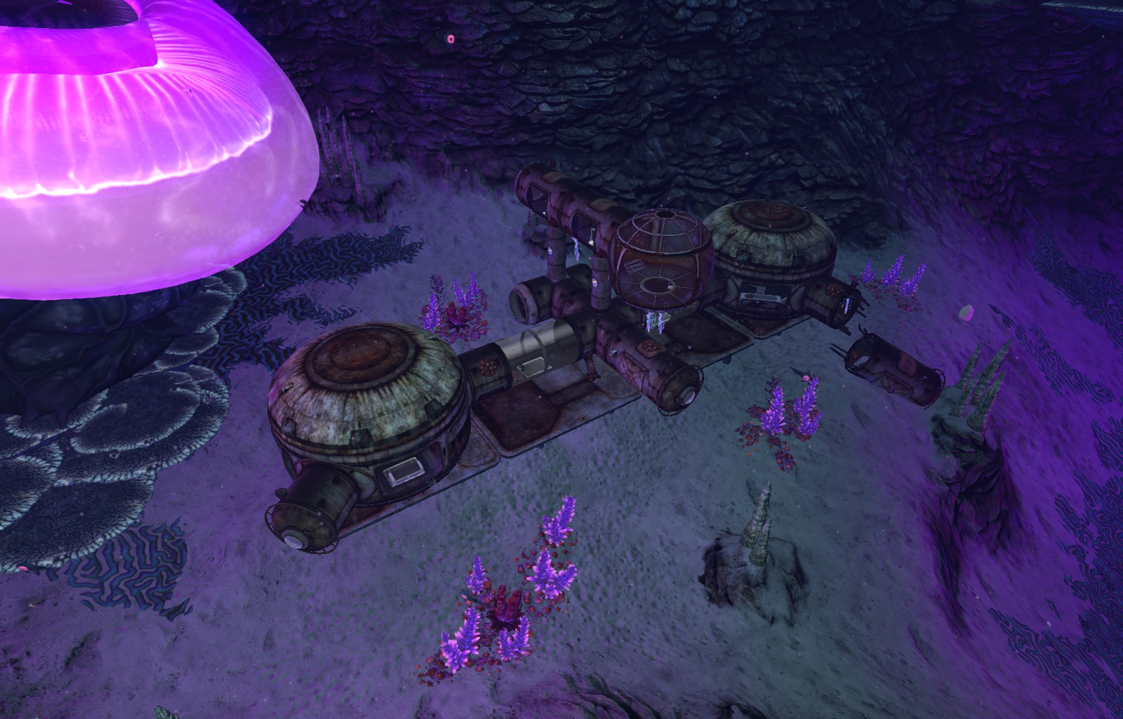 База в Пещерах медузных грибов — состоит из основной базы и 4-х платформ, расставленных по всему периметру биома.