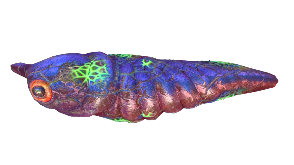 Это существо похоже на чью-то личинку, но является полноценным взрослым организмом. Спереди головы личинки выступают два отростка, предназначение которых неизвестно. По бокам головы находится нечто, похожее на глаза. Скорее всего, это только декоративные пятна, ведь у личинки отсутствует зрение. На брюхе личинки располагается её пасть, способная присосаться к гладким поверхностям.