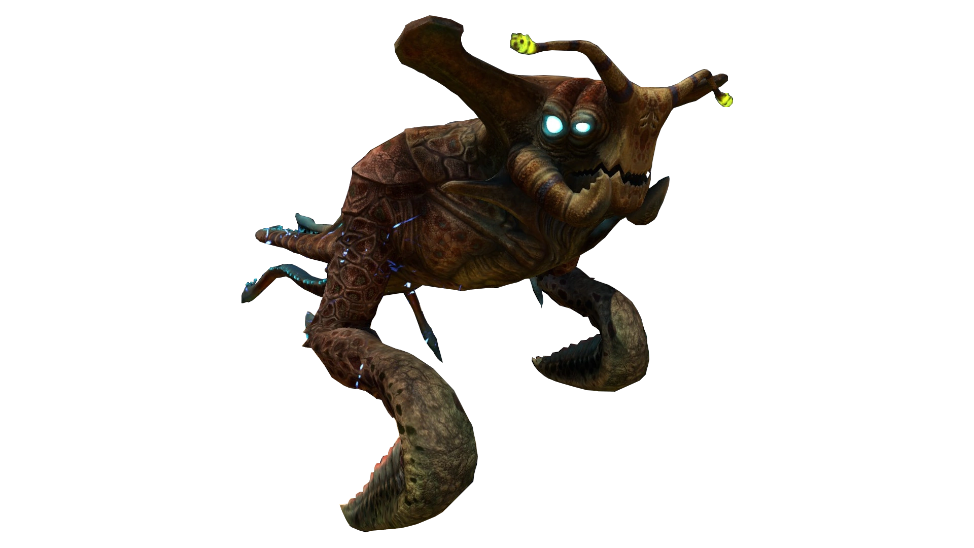 Зона кровавых водорослей, Глубины большого рифа | Поведение агрессивное. Наносит урон Мотыльку и Экзокостюму. Способен выпускать ЭМИ-волну, отключающую все приборы и может высасывать энергию из транспорта. |