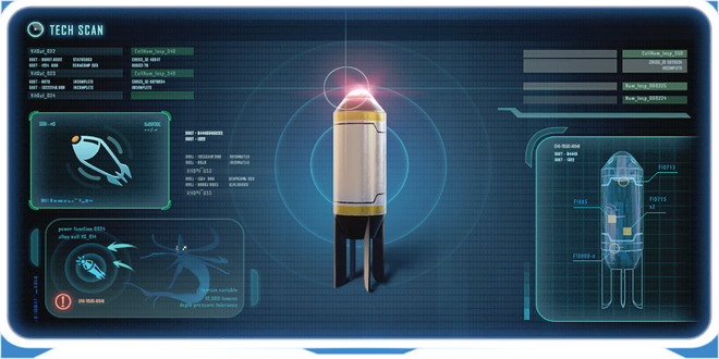 To deploy a Creature Decoy from the Cyclops, there must be a decoy stored inside the Decoy Loading Tube. The decoy can be deployed while piloting the Cyclops by pressing the decoy button located in the top right of the Cyclops' HUD. When a Creature Decoy is launched from the Cyclops, it is displayed as a yellow orb on the Cyclops' hostile creature display. There is a slight time delay between triggering a launch and the decoy being deployed: when it is, it is deployed from the Cyclops' midsection, so it is important to turn when it is deployed or an attacker might accidentally hit the Cyclops anyway.