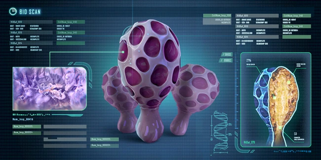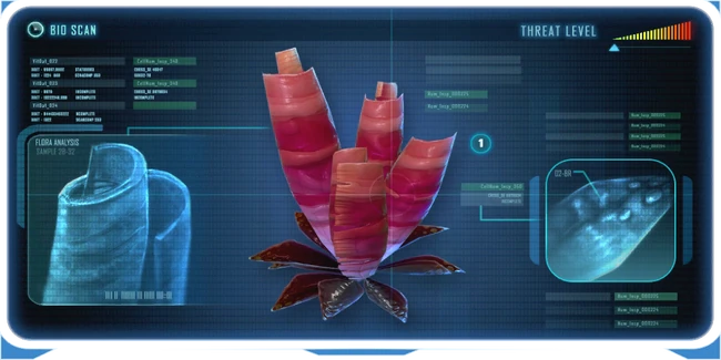 A lifeform unique to a microcosm located in a cave system deep within the grassy plateaus, where a high concentration of carnivorous lifeforms wards off smaller predators. - Consists of a tough, trunk-like base from which grows a fragile purple membrane Predators: None identified |
