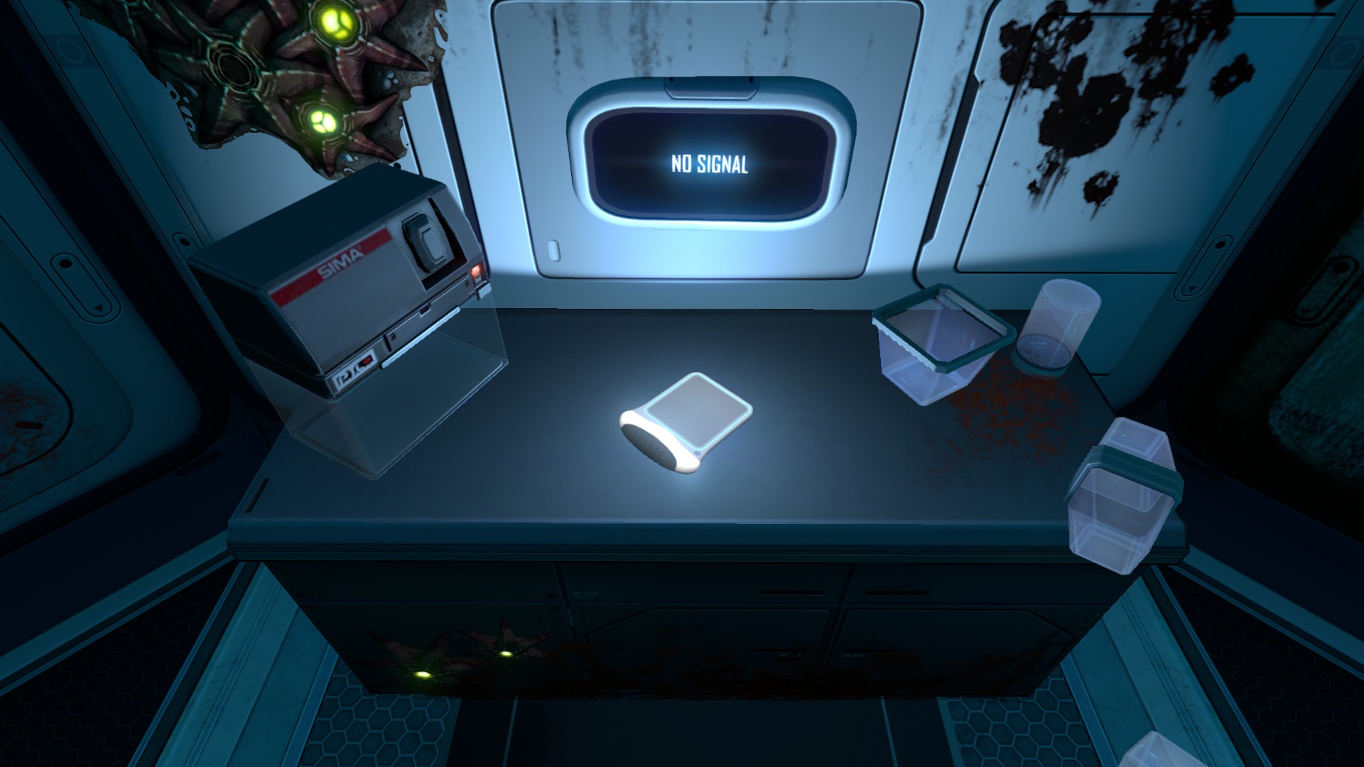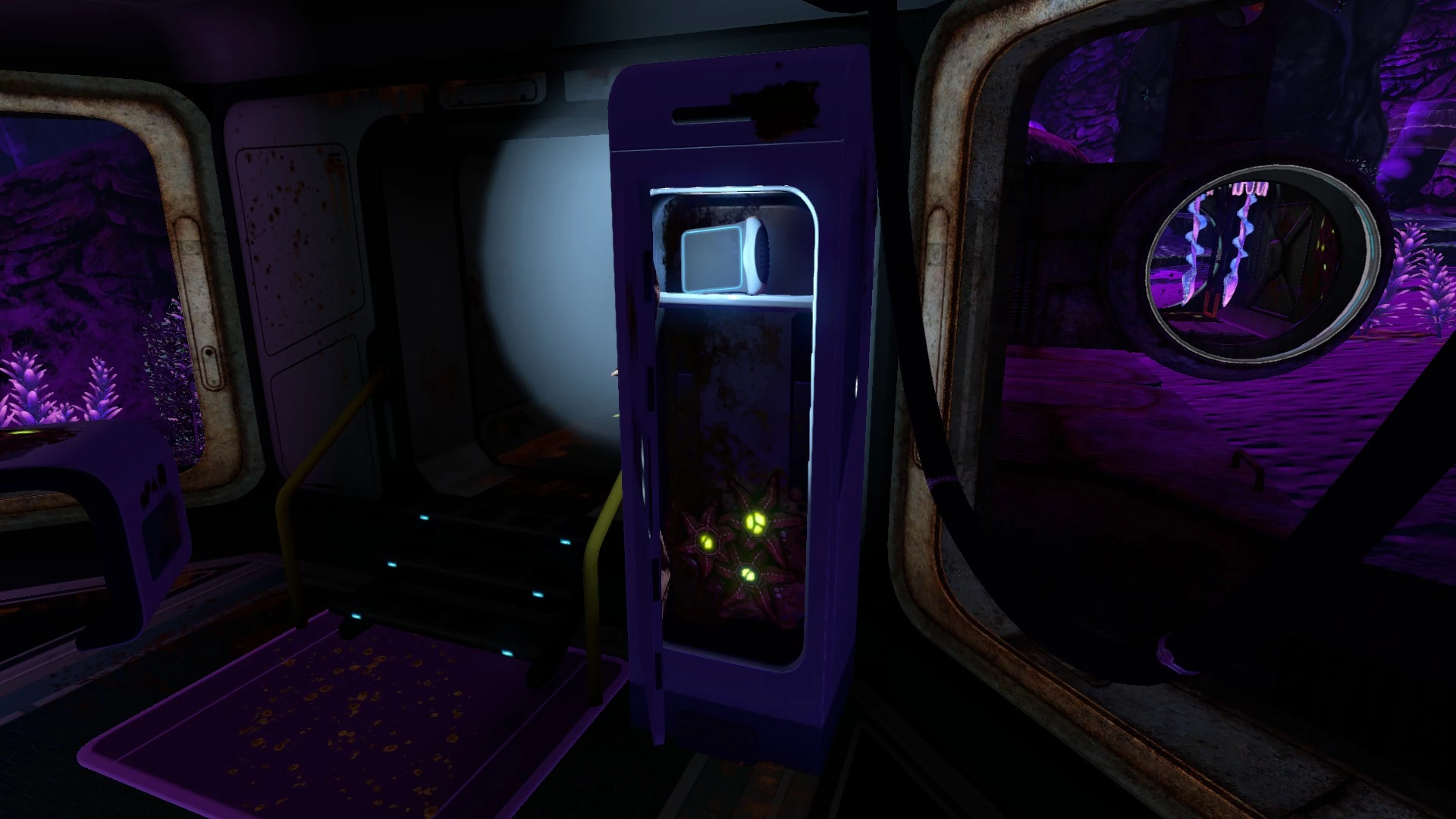 A spotlight can be found near the entrance. Inside the broken I Compartment there is an abandoned PDA. Inside the Multipurpose Room, there are several chairs, desks and a Water Filtration Machine on the wall directly opposite the entrance. Two abandoned PDAs can be found on a desk and inside a locker.