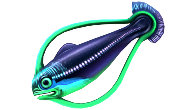 Small, school-mentality prey fish with a unique method of propulsion, and a distant relative of the bladderfish. 1. Antennae: 2. Purple/Green Coloration: 3. Behavior: Assessment: Edible |