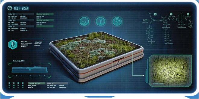 Designed for use exclusively inside regulated habitat modules, the interior growbed is more compact than the outdoor version, and features a hydroponic nutrient delivery system. |