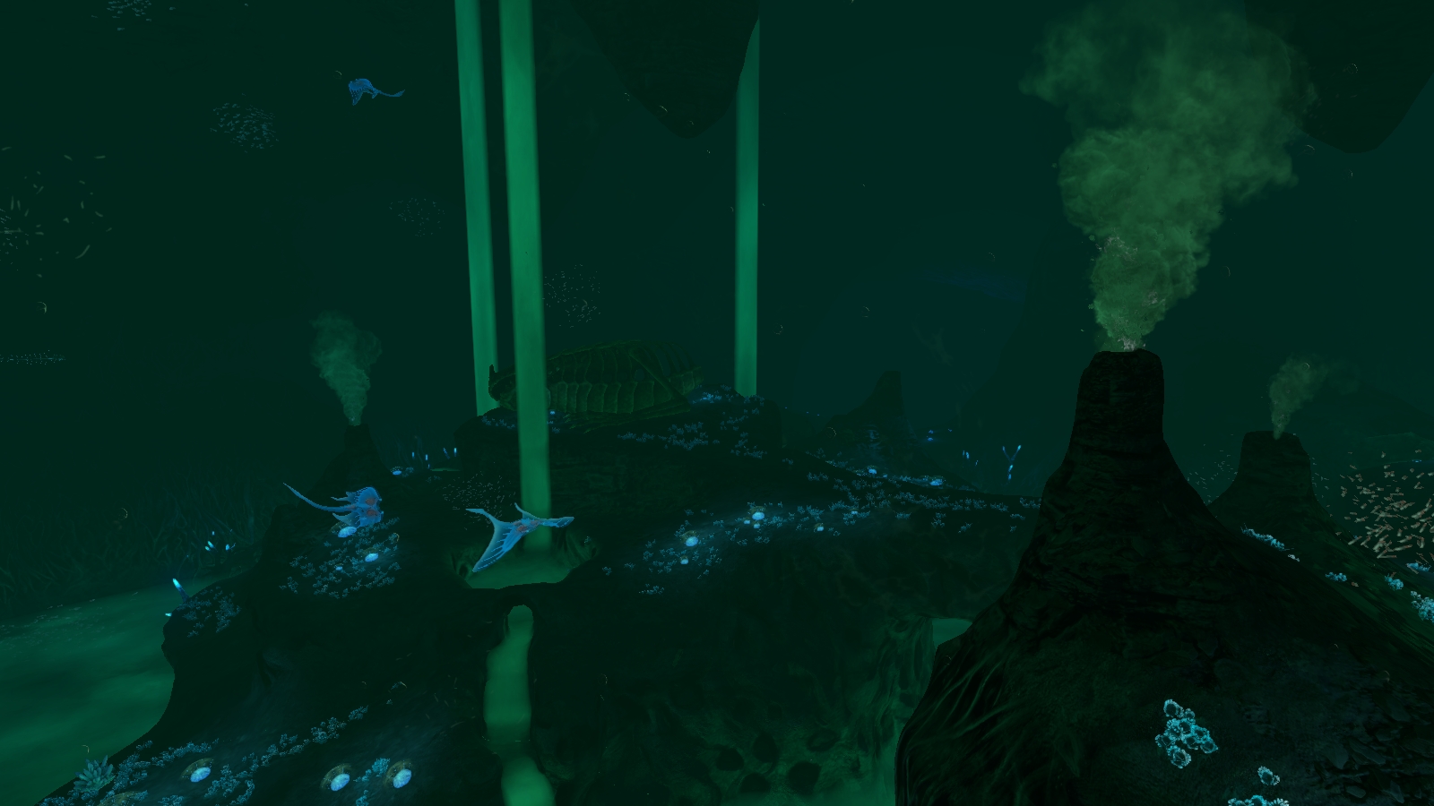 There are a few hydrothermal vents on this area. On these you can find Rubies, Lithium, Green Table Coral and sometimes Magnetite.