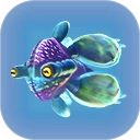 The Mesmer is a small, colorful fish with three design patterns; its four large skin panels are bluish-white, and are capable of emitting a green bioluminescent glow at night, with dark violet stripes, and are surrounded by a thin translucent blue film. The patterns on these panels radiate and ripple when the creature is mesmerising its prey.
