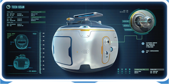 The Scanner Room is a Seabase module. It is constructed with the Habitat Builder, and allows the player to generate a 3D map of the surrounding Biome, scan for resources, and conduct scouting via controllable Camera Drones.