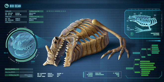 This skeleton is found in the Lost River Junction. It belonged to a Sea Dragon Leviathan that attacked the Disease Research Facility in an attempt to retrieve an egg belonging to it. The Precursors had taken the egg in hope it would reveal the hatching mechanisms of Sea Emperor Leviathan Eggs, likely due to the similar physical appearances of these two species. It also suggests they share a common ancestor. The Sea Dragon's attack on the facility destroyed it, but also caused fatal head trauma to the Sea Dragon; it died not long after the attack. The remains are approximately one thousand years old.