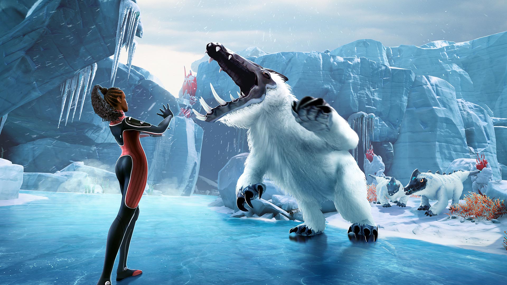 The Snow Stalker is a large terrestrial predator present in Subnautica: Below Zero. It is a relative of the aquatic Stalker native to the Crater. The player can interact with it with the Spy Pengling to get Snow Stalker Fur.