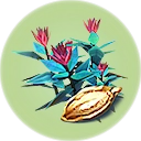 A pink-leafed plant with an angular appearance which grows exclusively on land. |